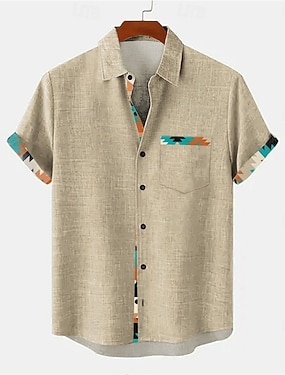 Voor heren Overhemd linnen overhemd Strand hemd Grafische prints Buiten Vakantie Geel Rood blauw Groen Korte mouw Opstaand Zomer Lente Kleding Afdrukken
