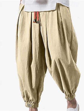 Voor heren Linnen broek Broek Zomerbroek Knickerbockers (dames) Strandbroeken Zak Trekkoord Elastische taille Effen Comfort Ademend Vakantie Dagelijks Feestdagen Casual Ruimvallend Leger groen Zwart