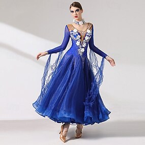 Ballroomdansen Kleding Strass Plooien Gesplitst Dames Feest Opleiding Prestatie Lange mouw Hoog Spandex Polyester