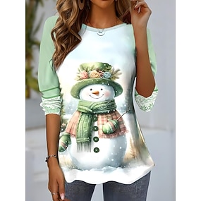 Kerstmis Dames T-shirt Grafisch Sneeuwpop Vintage Modieus Stijlvol Lange mouw Strakke ronde hals Ronde hals Normale tops Dagelijks Weekend Afdrukken blauw Lichtgroen Blozend Roze Rood Oranje Herfst