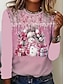 Kerst Vrouwen T-shirt Grafisch Mode Casual Lange Mouwen Crew Neck Ronde Hals Reguliere Tops Dagelijks Weekend Print Roze Goud Groen Zomer Lente Herfst Winter