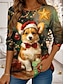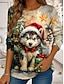 Kerstmis Dames T-shirt Grafisch Hond Vintage Modieus Stijlvol Lange mouw Strakke ronde hals Normale tops Dagelijks Weekend Afdrukken blauw Groen Khaki Herfst Winter