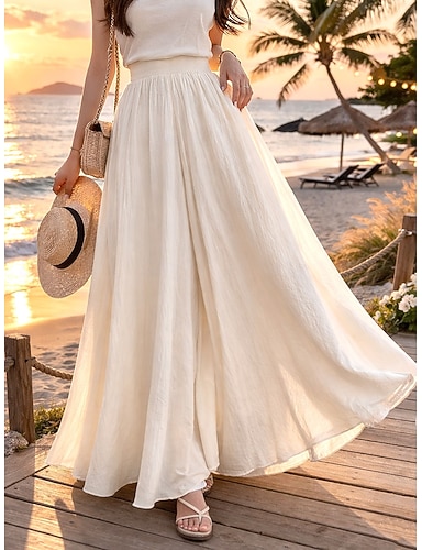 Dames Broek Zomerbroek Wijde broek Vakantie Modieus Basic Volledige lengte Hoge taille Trekkoord Elastische taille Breed Been Comfort Lichtgewicht Zacht Inelastisch Strand Straat Causaal Lichtgeel