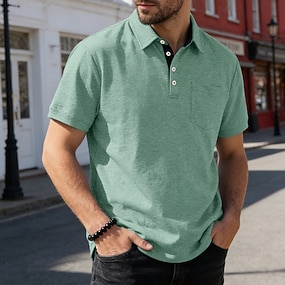 Voor heren Polo Golfshirt liiketoiminta Casual Klassiek Korte mouw Modieus Basic Effen Kleur Zak Button-omlaag Zomer Lente & Herfst Normale pasvorm Retro Rood Zwart Wit Marineblauw Groen Khaki Polo