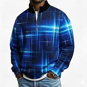 Voor heren Meetkundig Polo Lange mouw Opstaande boord Sportkleding Vakantie Sportkleding Casual / Dagelijks 3D-afdrukken Lente Herfst Winter blauw paars Zwart