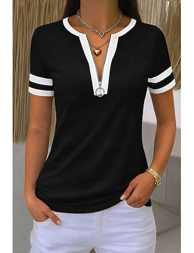 Dames Blouse Kwart ritssluiting Effen Kleur Vintage Stijlvol Basic Korte mouw V-hals Normale tops Dagelijks blauw Zwart Rood Groen Khaki Zomer Lente