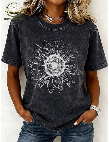 Dames T-shirt Afdrukken Zuurwas Vintage wassing Grafisch Planten Brief Stijlvol Basic Klassiek Korte mouw Strakke ronde hals Normale tops Casual Dagelijks blauw Zwart Blozend Roze Paars Groen Zomer