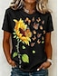 Dames T-shirt Afdrukken Bloemig Grafisch Modieus Stijlvol Basic Korte mouw Strakke ronde hals Normale tops Casual Dagelijks Weekend Zwart Zomer Lente