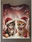 Kerst Vrouwen T-shirt Grafisch Dier Vintage Mode Stijlvol Lange Mouw Crew Neck Reguliere Tops Dagelijks Weekend Print Grijs Rood Rood Marineblauw Blauw Donkergroen Herfst Winter