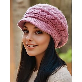 Warm gebreide baret voor dames - zachte kabelgebreide muts, stijlvol en comfortabel, perfect voor kerst- en wintermode, verkrijgbaar in meerdere kleuren