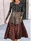 Dames Halflange jurk A lijn jurk Casual Dagelijks Normale pasvorm Bloemig Geometrisch Lange mouw Strakke ronde hals Zwart Rood blauw Paars Lente Herfst