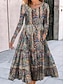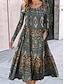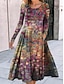 Dames Maxi-jurk Casual jurk Swingjurk Boho-jurk Bohemen Vintage Etnisch Vakantie Dagelijks Normale pasvorm Bloemig Lange mouw Strakke ronde hals Wit Wijn Fuchsia Groen Zomer Lente