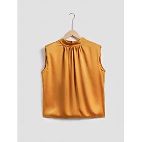 Voor heren Overhemd Zijdeachtig Satijnen overhemd Normaal shirt Galashirt Effen Bruiloft Feest Zilver Zwart Goud Groen Lange mouw Zonder Kraag Lente Herfst Kleding Veters