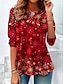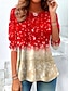 Kerstmis Vrouwen Blouse Bloemig Elegant Stijlvol Casual Lange Mouw Crew Neck Reguliere Tops Dagelijks Pailletten Patchwork Print Zilver Wijnpaars Fuchsia Goud Lente Herfst Winter