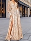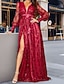 Dames Lange jurk maxi-jurk Jurk met lovertjes Cocktail jurk Schede jurk Elegant Modieus Modern Feest Speciale gelegenheden Avond Feest Normale pasvorm Effen Lange mouw V-hals Zwart Wijn Goud Lente