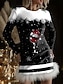Kerstmis Dames Mini-jurk Schede jurk Casual Dagelijks Normale pasvorm Kerstboom Sneeuwvlok Lange mouw Strakke ronde hals blauw Zwart Rood Paars Herfst Winter