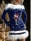 Kerstmis Dames T-shirt Kerstman Rendier Sneeuwvlok Vintage Stijlvol Klassiek Lange mouw Strakke ronde hals Ronde hals Normale tops Weekend Afdrukken blauw Grijs-Groen Leger Groen Marine Blauw Goud