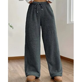 Dames Brutaal Chinese Casual Volledige lengte Medium Taille Effen Elastisch ontwerp met trekkoord Thermisch Warm Rekbaar Buiten Vakantie Straat Kameel Abrikoos Grijs Zwart Winter Ruim Passend