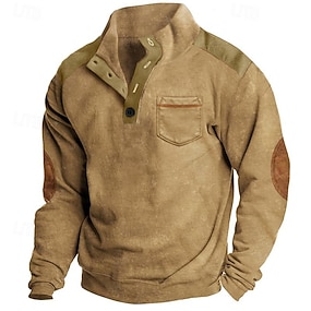 Voor heren Sweatshirt Trui met capuchon Stoppen Hoodie met knoopsluiting Khaki Opstaande boord Effen Lapwerk Sport & Outdoor Casual Dagelijks Streetwear Stoer Sportkleding Herfst Lente & Herfst