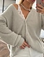 Dames Trui Vest Modieus Streetwear Dagelijks Effen Kleur Geribd V-hals Gebreid Lange mouw Lange tops breien Feestdagen Uitgaan Weekend Khaki Lichtgrijs Herfst Winter