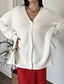 Dames Trui Vest Modieus Streetwear Casual Effen Kleur V-hals Gebreid Lange mouw Normale tops breien Dagelijks Feestdagen Uitgaan Zwart Wit Herfst Winter
