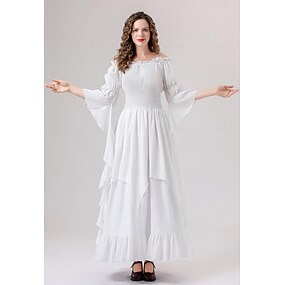 Vintage Rococo Renaissance Maxi Jurken Normaal Julia Prinses Bruid Geplooid Volant Prinses Ronde hals Kostuum Dames Halloween Carnaval Maskerade Prestatie Feest Halloween Volwassenen Alle seizoenen