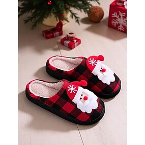 Kerstpantoffels voor dames met kerstmanpatroon, warme binnenhuisschoenen voor het comfort van de winter in huis
