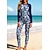 Dames Uitslagbescherming Zwempak Sneldrogend Lichtgewicht Ademend Lange mouw Romper Badpak Verwijderbare vulling Rits Aan De Voorzijde Surfen Strand Watersport Sportschoenen Zwemmen Flora Lapwerk