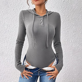 Dames bodysuit Actief Effen Kleur Lange mouw Capuchon Trekkoord Vakantie Dagelijks Normale pasvorm Zwart Bruin Khaki Lente