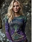 dames t-shirt grafisch viking vintage bohemian vintage mode lange mouw ronde hals normale tops dagelijks weekend print paars lente herfst winter