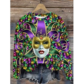 Carnaval Dames Pullover Sweatshirt Grafisch Mode Casual Lange Mouwen Crew Neck Reguliere Tops Street Dagelijkse Wearprint Paars Groen Lente Fall Winter