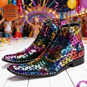 Heren Mardi Gras Multikleur Reflecterende Boots – Stijlvolle 100% Premium Rundleer Glanzend Geometrisch Ontwerp Ideaal voor Carnaval Nachtleven en Feestelijke Vieringen