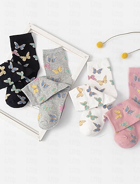 4 paar damessokken met ronde hals, dagelijkse dierenprint, katoen, eenvoudige lolita, schattige sportsokken