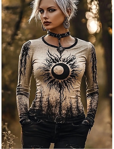 Dames Boho T-shirt Graphic Viking Vintage Bohemia Vintage Mode Lange Mouw Ronde Hals Reguliere Tops Dagelijks Weekend Print Zwart Lente Herfst Winter