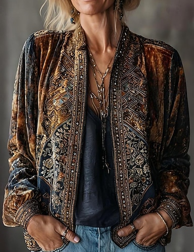 Dames Boho-shirt Blouse Geklede topjes Met ruches Afdrukken Gedrapeerd Effen Elegant Vintage Dagelijks Lange mouw Hoge nek Normale tops Dagelijks Werk Feestdagen Bruin Herfst Winter