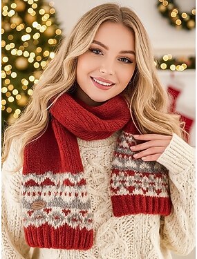 gebreide kerstsjaal voor dames – gezellig, zacht, fair isle-patroon, meerdere kleuren, perfect om te dragen tijdens de feestdagen en als wintercadeau