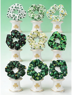Dames haarelastiekjes set voor St. Patrick's Day, 9 stuks haarelastiekjes van stof met klaverprint, zachte elastische haarelastiekjes, feestelijke Ierse groene haaraccessoires voor vrouwen &Meisjes,