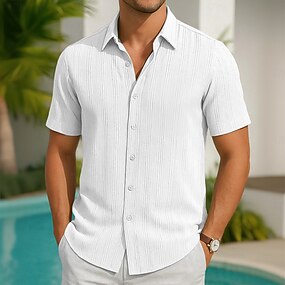 Katoen en linnen Klassiek Voor heren Overhemd linnen overhemd Zomer overhemd Strand hemd Overhemd met knopen Zwart Wit blauw Korte mouw Effen Strijkijzer Zomer Vakantie Feestdagen Kleding