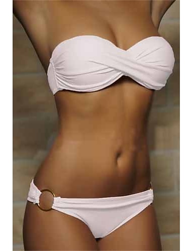 Dames Zwemkleding Bikini 2 stuks Normaal Zwempak 2-stuks Met ruches Open achterkant Heldere kleur Klaver Wit Zwart Geel Roze Gewatteerd Strapless Badpakken nieuw Vakantie Sexy / Modern