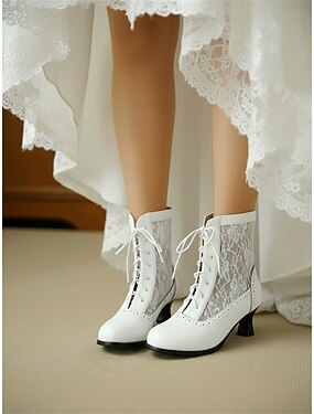 Witte Victoriaanse enkellaarsjes met kant voor dames – vintage veterschoenen met lage hak uit de jaren 20, bruilofts-, feest- en Edwardiaanse stijl