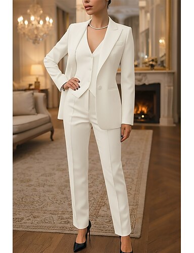 Dames 3-delige pakken Formeel Bruiloft gast Formele avonden Elegant Eenvoudig Lange mouw Tot de enkel Piek revers Enkele rij knopen
