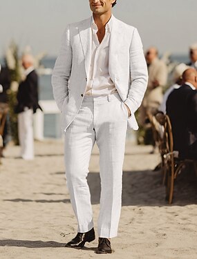 Heren Linnen pakken Strand bruiloft liiketoiminta Wit Beige Zomer Pak Ingesneden revers Modieus Formeel Effen Getailleerd 2-delige set Enkele rij knopen met één knoop