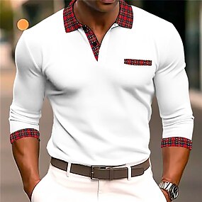 Voor heren Polo met kwartrits Golfshirt Dagelijks Feestdagen Revers Lange mouw Modieus Modern Effen Lente & Herfst Normale pasvorm Zwart Wit Blozend Roze Wijn Marineblauw Koningsblauw Polo met