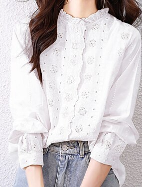 Dames Overhemd Blouse Kanten topjes Lapwerk Vetoketju Kanten rand Effen Kleur Effen Elegant Vintage Stijlvol Lange mouw V-hals Hoge nek Normale tops Dagelijks Feestdagen Uitgaan Wit Zomer Lente
