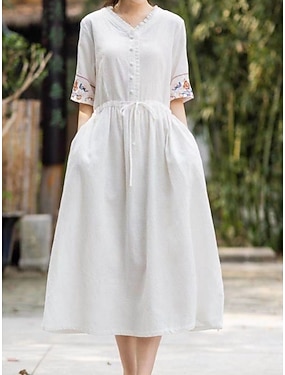 Dames Halflange jurk Imitatie katoenlinnen A lijn jurk Zomerjurk Casual Dagelijks Normale pasvorm Effen Halve mouw Strakke ronde hals blauw Wit Paars Groen Zomer