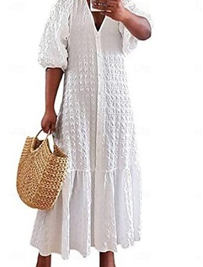 Dames Halflange jurk A lijn jurk Casual Dagelijks Ruim Passend Effen Halve mouw V-hals Zwart Wit Geel Zomer Lente Herfst