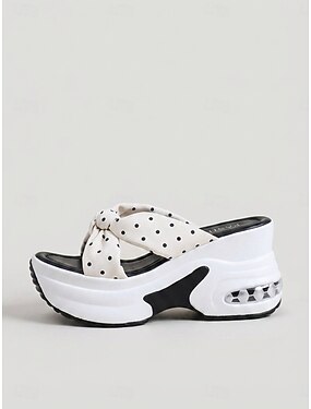Damessandalen met stippen en strik op het platform – stevige instapschoenen met sleehak, een leuke casual stijl voor buitenactiviteiten, reizen en strandwandelingen.
