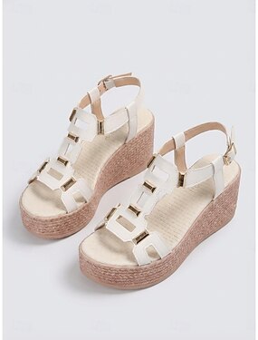 dames witte gesp wig sandalen – retro studded platform slippers voor strand, cruise en dagelijks gebruik
