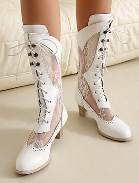 dames victoriaanse stijl witte veterlaarzen met kantpanelen - elegante vintage schoenen voor bruiloften en speciale gelegenheden