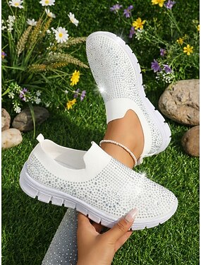 Dames instapsneakers met roze strasssteentjes - ademend Flyknit-bovenwerk, lichtgewicht &Glanzende, casual sportschoenen voor wandelen, joggen, reizen en dagelijks gebruik. &lichte trainingen